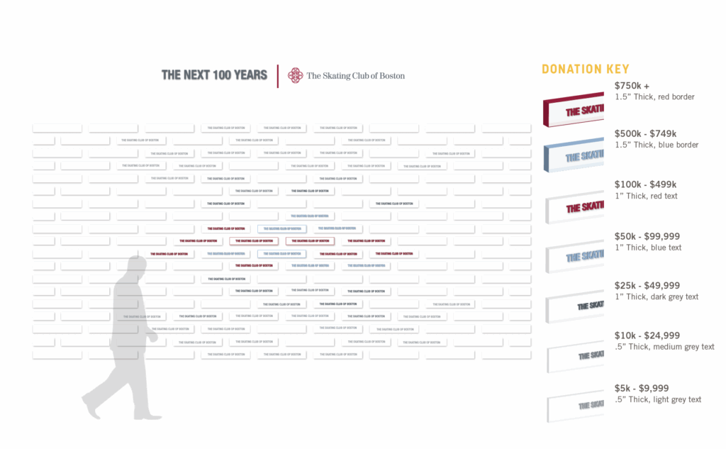 Unrestricted gifts of $5,000 or more will be permanently recognized on the Club’s Donor Wall located in the West end of the Club’s main lobby. The Club’s Donor Wall has been intentionally designed to reflect the ongoing generosity of friends of The Skating Club of Boston.
